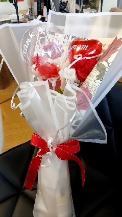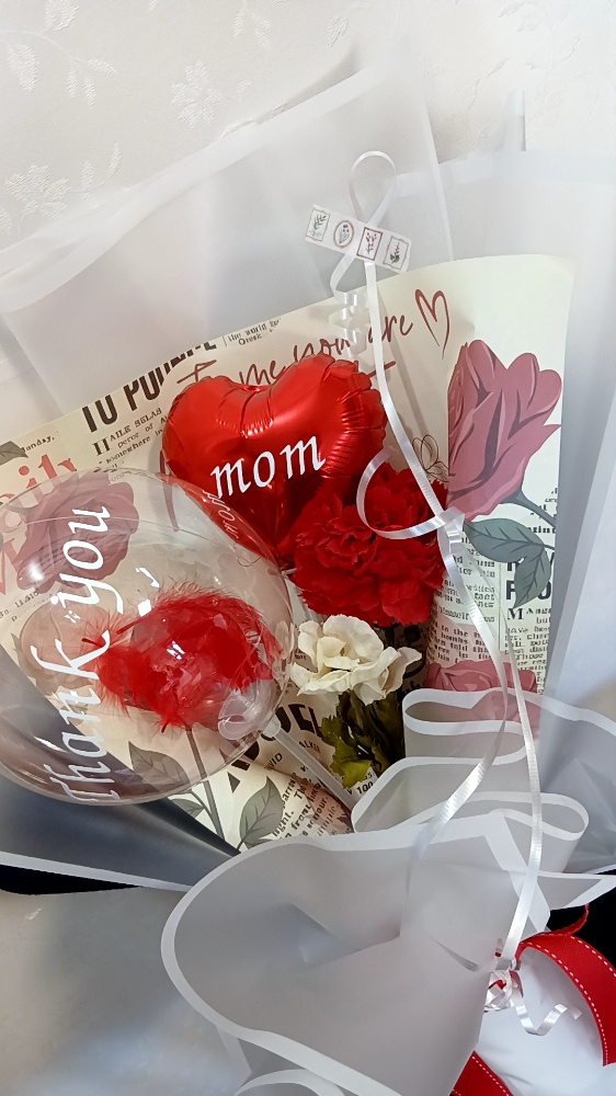 母の日ギフトラッピングをテーマに、バルーンを使ってのラッピングです。